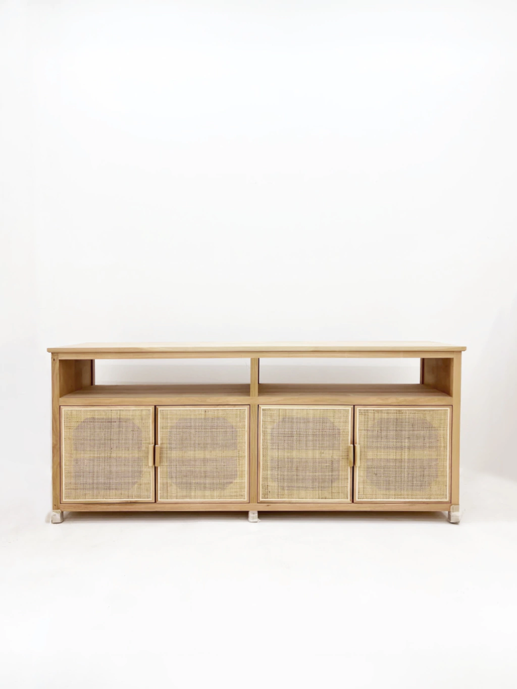 Para nuestra Cómoda 002 nos inspiramos en los clásicos muebles de campo: molduras, paneles embutidos y detalles estructurales. A eso le agregamos la frescura de la esterilla natural de ratán de Indonesia para que sea uno de nuestros muebles más vendidos.
