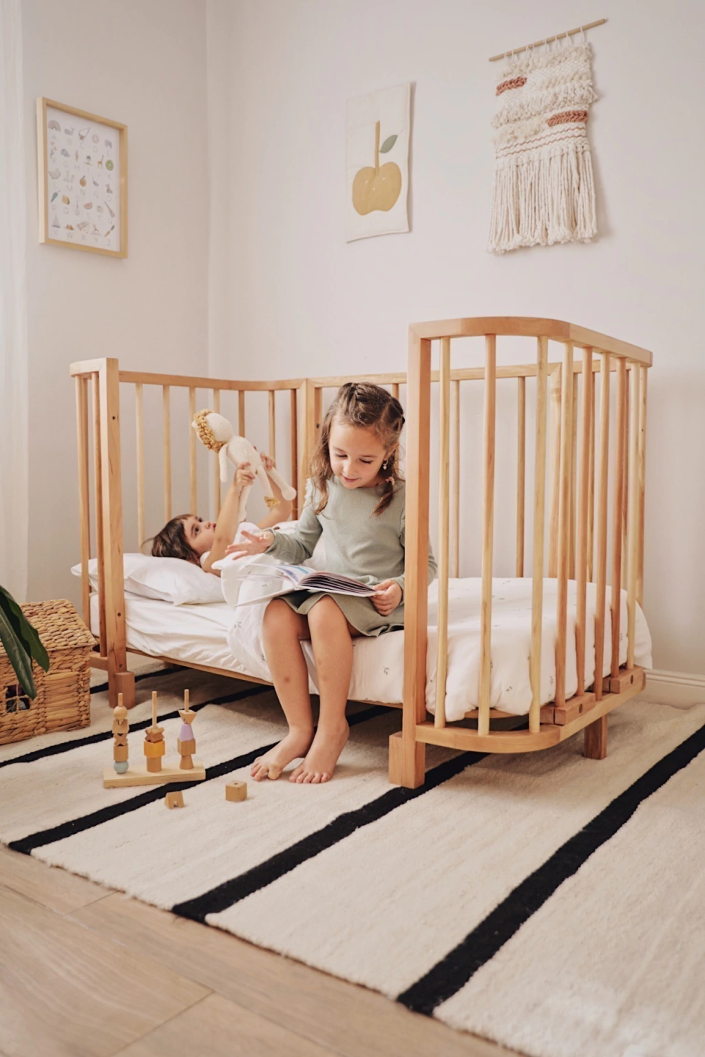 Nuestra Cuna Evolutiva 3 en 1 se transforma en Colecho, Cuna y Camita según las necesidades de tu bebé a medida que crece.