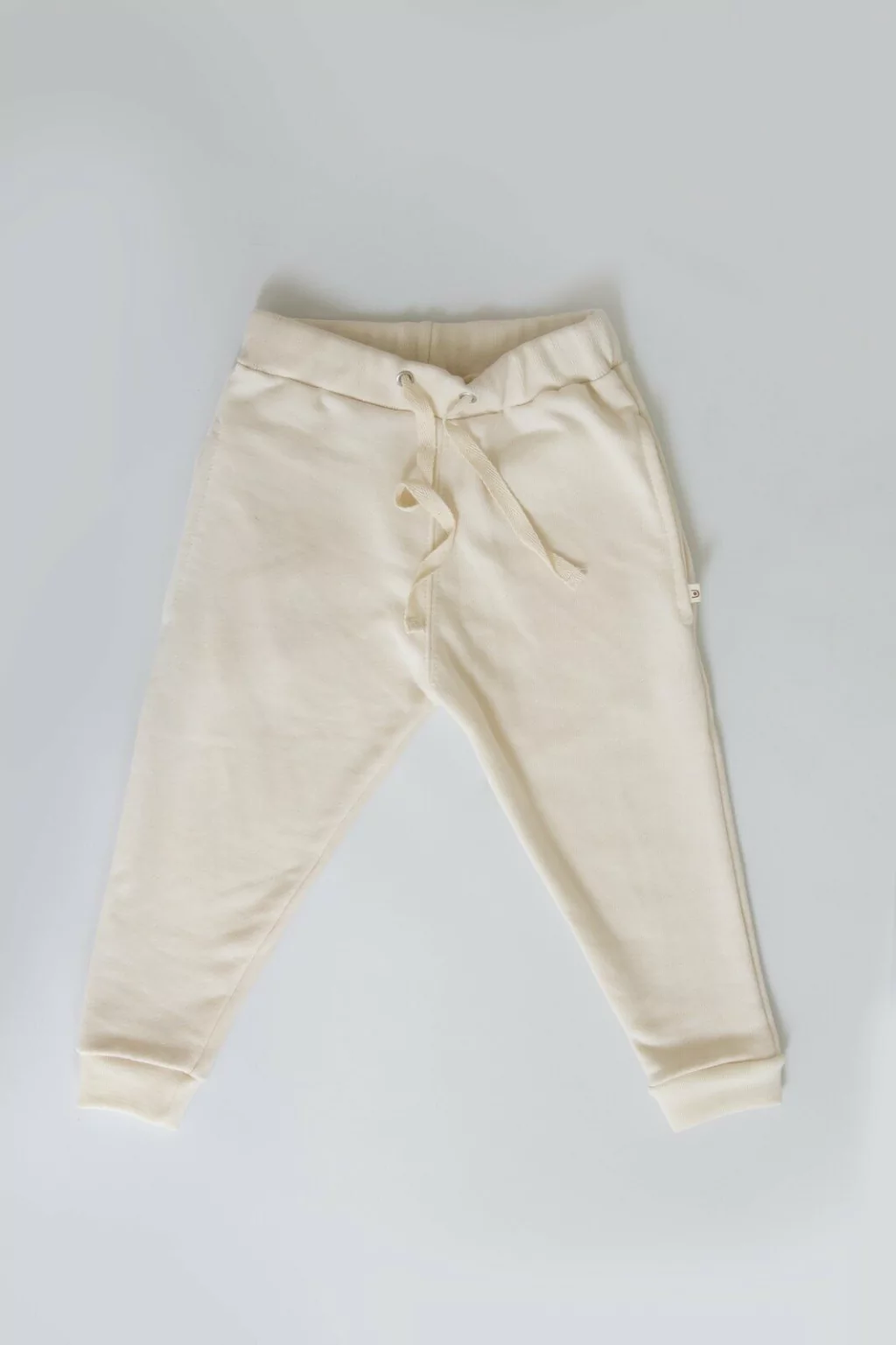 Pantalón tipo jogger color natural con cintura elástica y cordones ajustables frontal. Bolsillos delanteros y acabado puño en bajo.