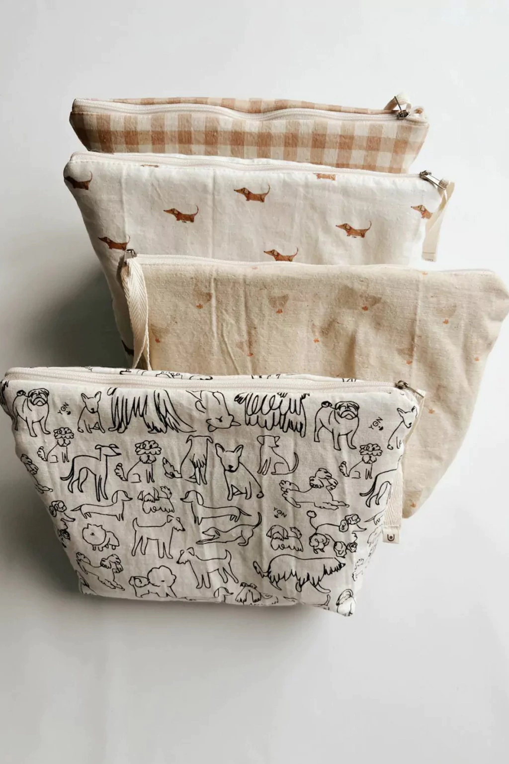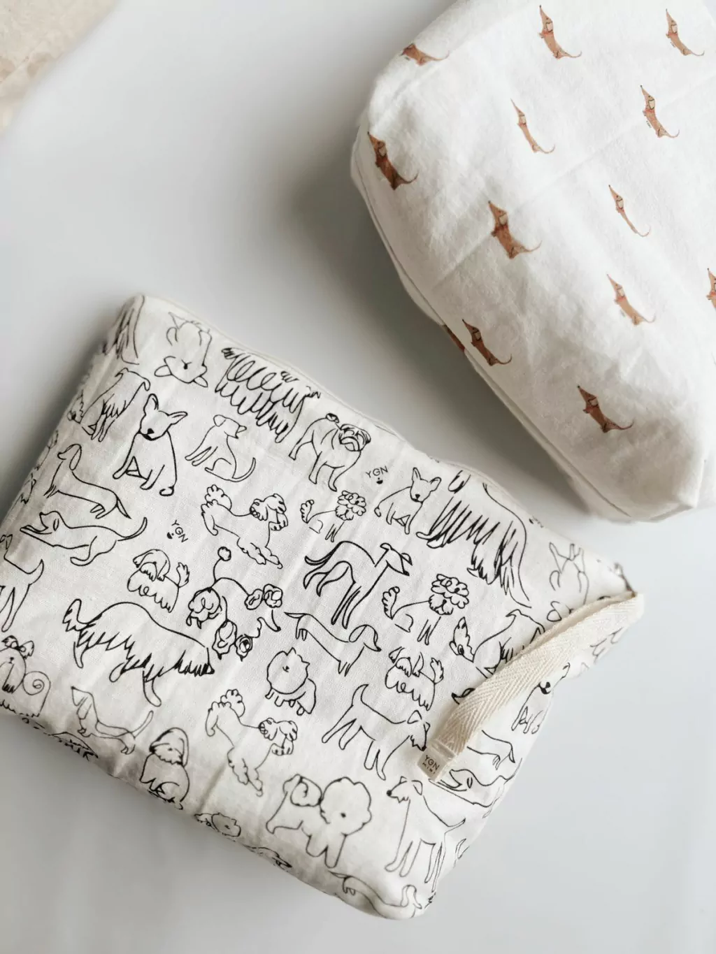 Neceser de tela 100% algodón con diseño exclusivo. Interior de tusor con bolsillo divisor.