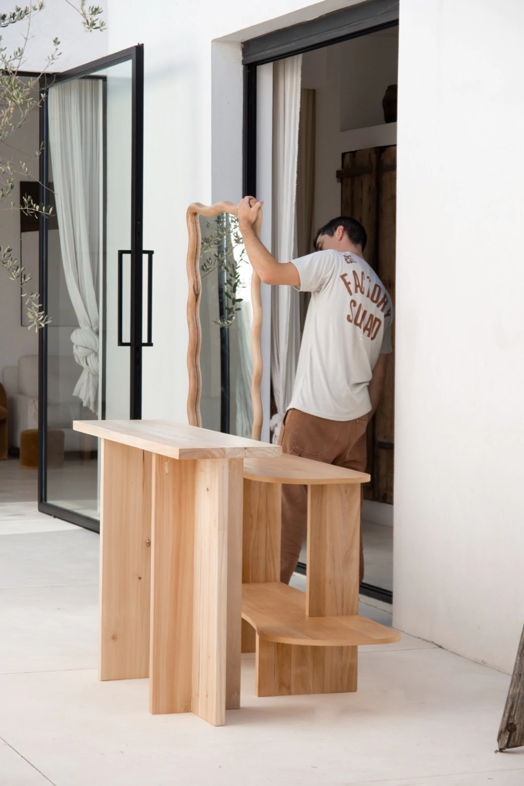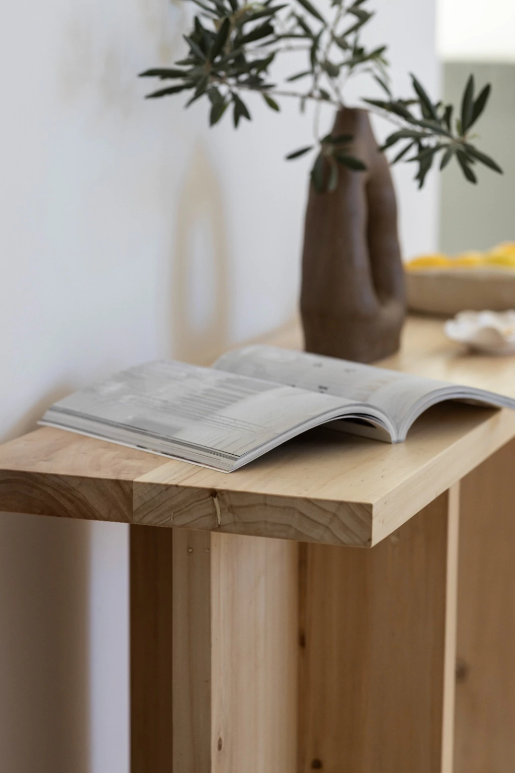 Recibidor en madera maciza. De líneas rectas y robusto, pensado para la entrada o cualquier lugar de tu casa. Llevalo en acabado natural u oscuro.