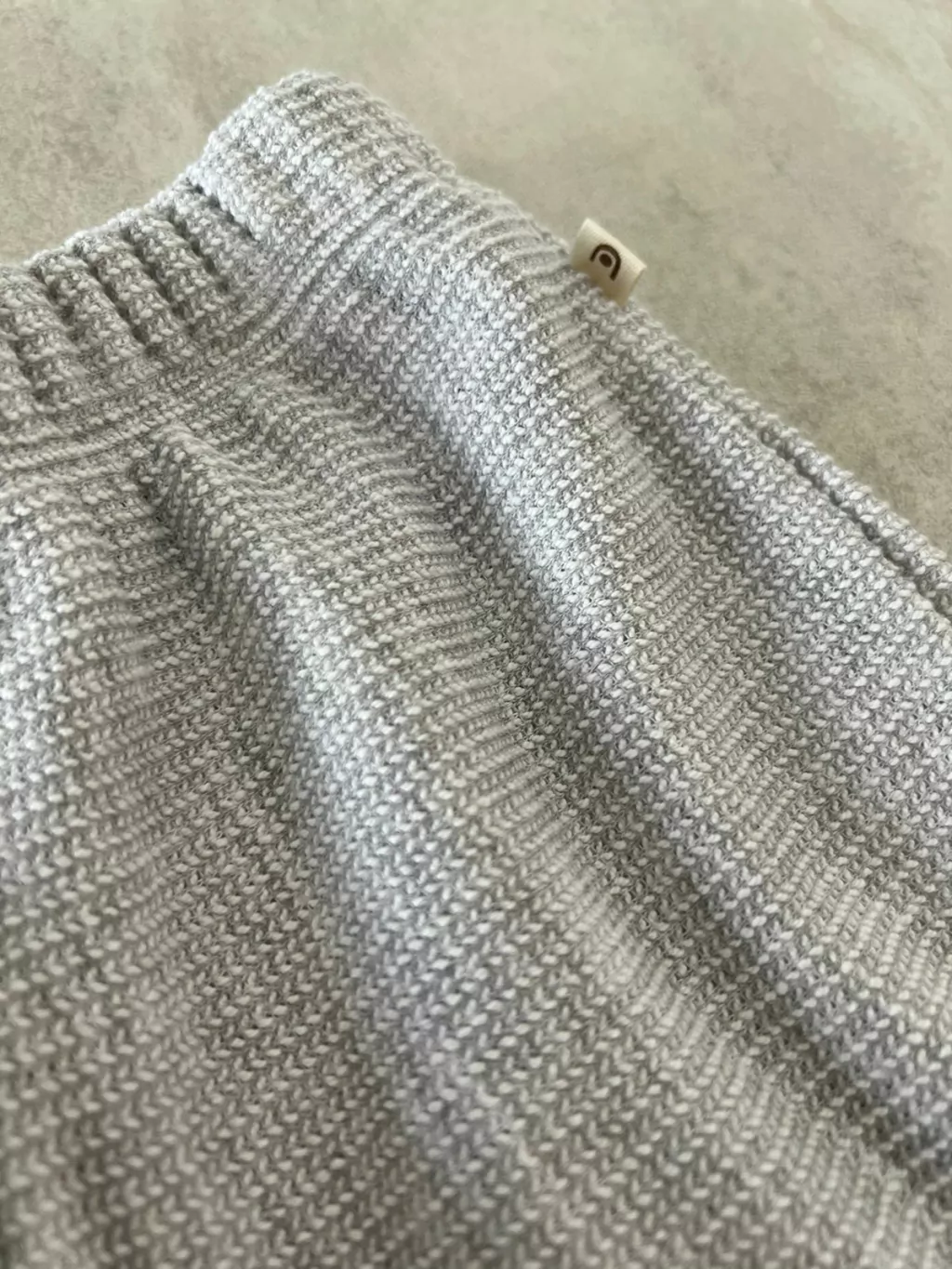 Short gris amplio con cintura elástica y bolsillos traseros.