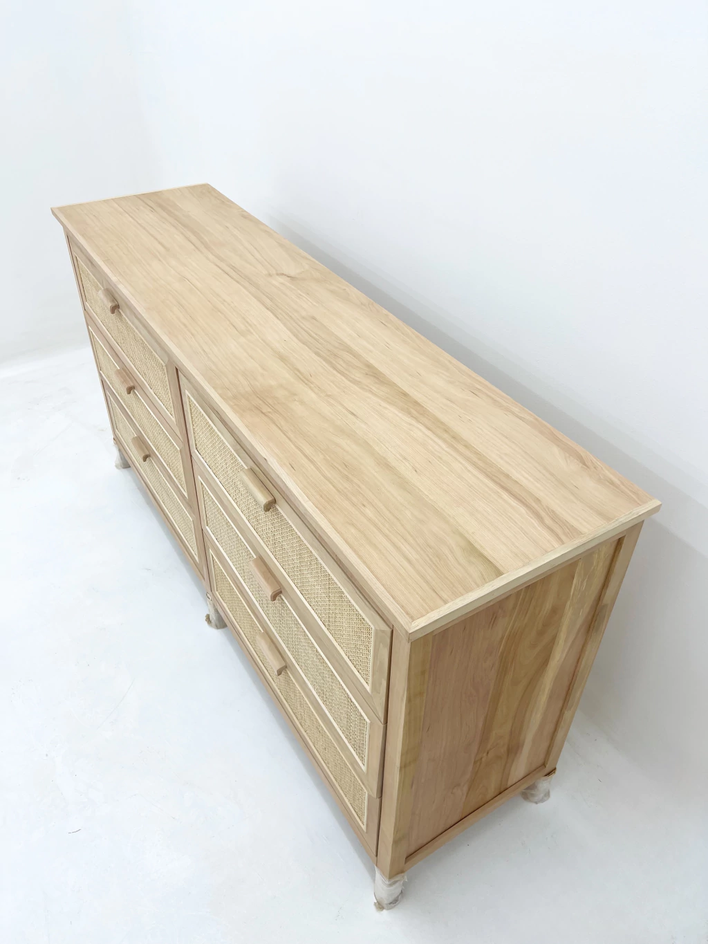 Esterilla natural de Indonesia. Terminación de laca poliuretánica extra mate impermeable a las manchas y de aspecto natural.