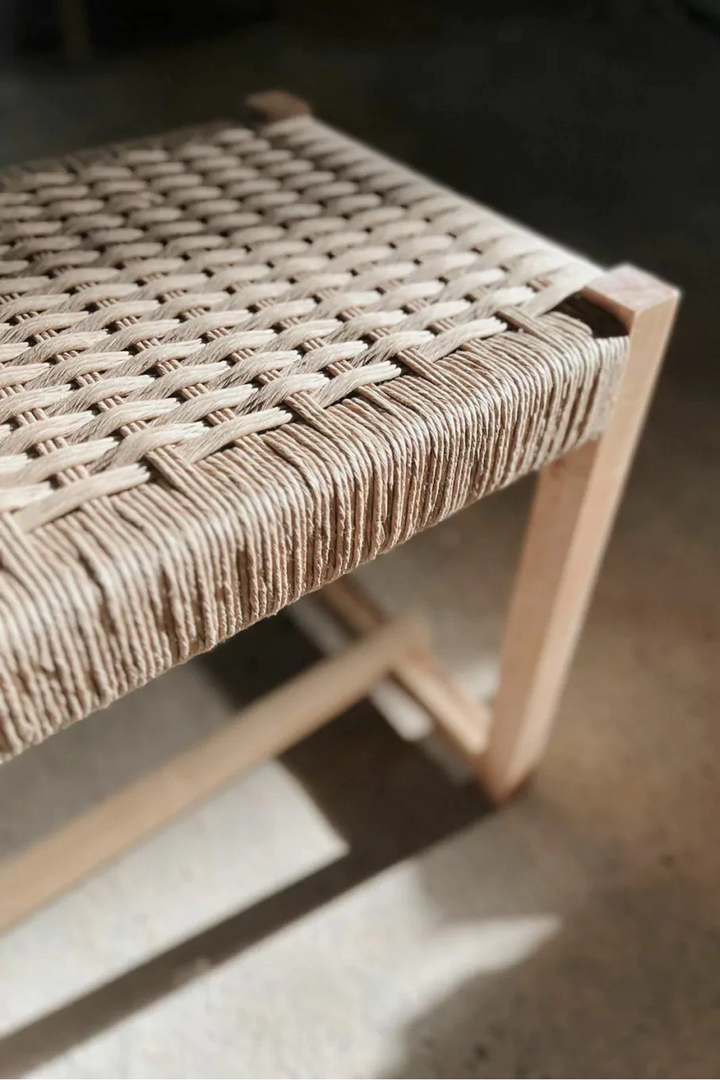 Banco de Zoita maciza, con tejido artesanal de hilo kraft.