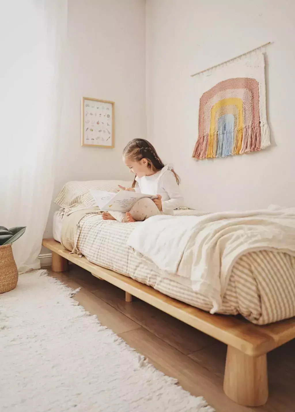 Especialmente pensada cerca del suelo para que sea cómoda y segura, orientada a la transición de los más chicos de una cuna a una cama convencional de manera segura, fomentando su autonomía y comodidad.